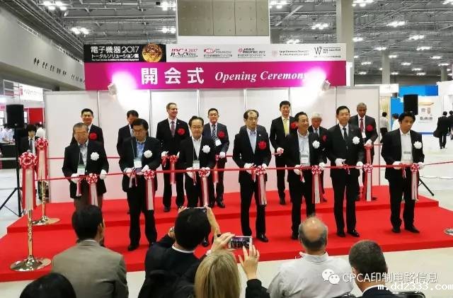 JPCA SHOW展馆位于东京国际展示场,时间为6月7日~9日,分布在四个展馆,考察团团员到达后一起参观展会开幕式,CPCA国际联络工作委员会主任武守坤代表CPCA上台剪彩,随后团员参观展会。