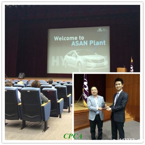 4月21日,CPCA赴韩考察团参观了韩国现代公司(HYUNDAI Motor,Asan),整个现代工厂全部机械化运作,不见几名工人,多了些金属的未来感。CPCA常务理事涂利伟代表CPCA赴韩考察团向现代公司赠送了礼物。当晚,CPCA副理事长兼秘书长王龙基、CPCA秘书长助理兼办公室主任洪芳、CPCA常务理事涂利伟先生参加WECC欢迎晚宴。