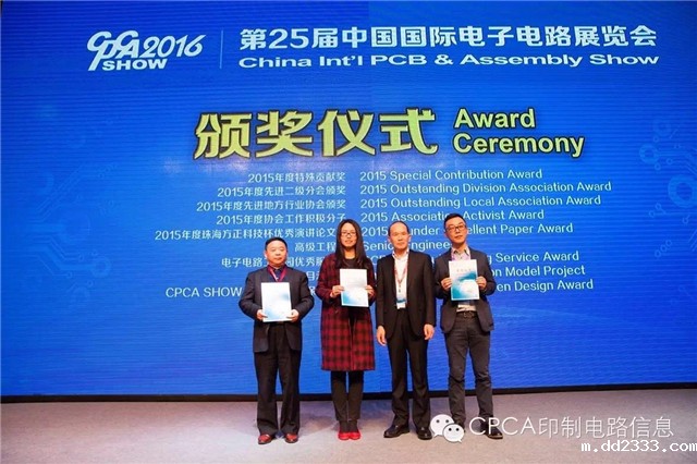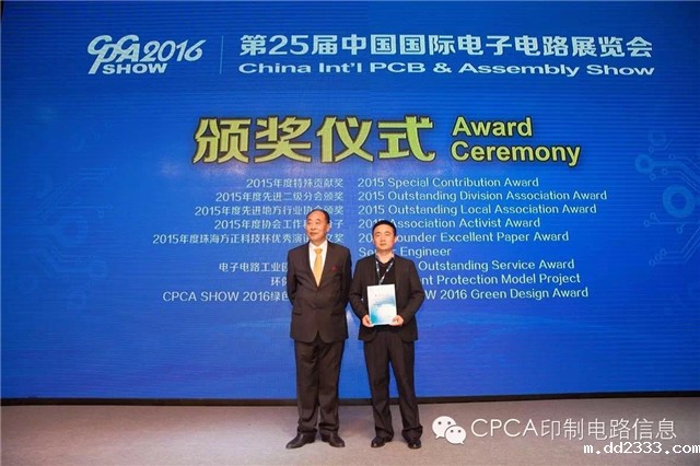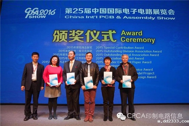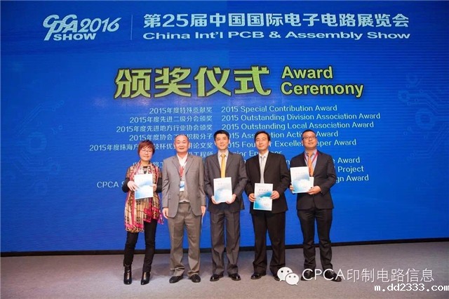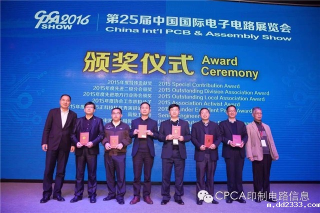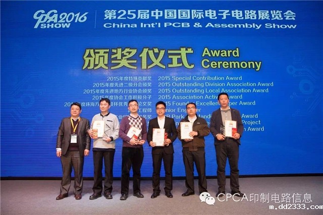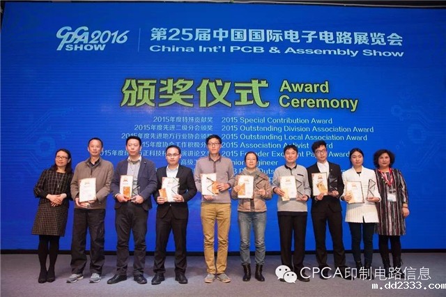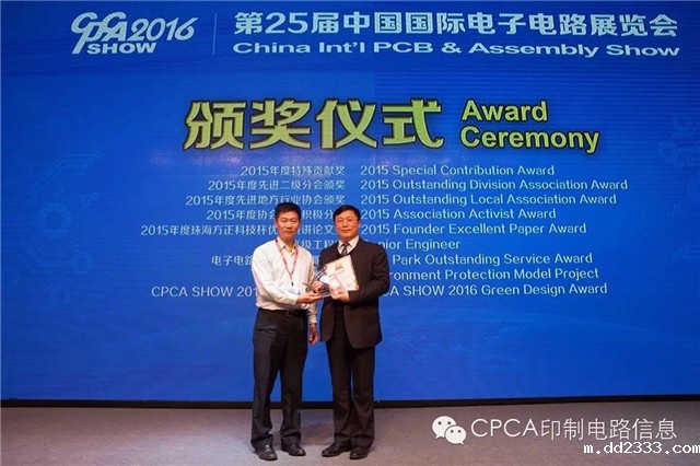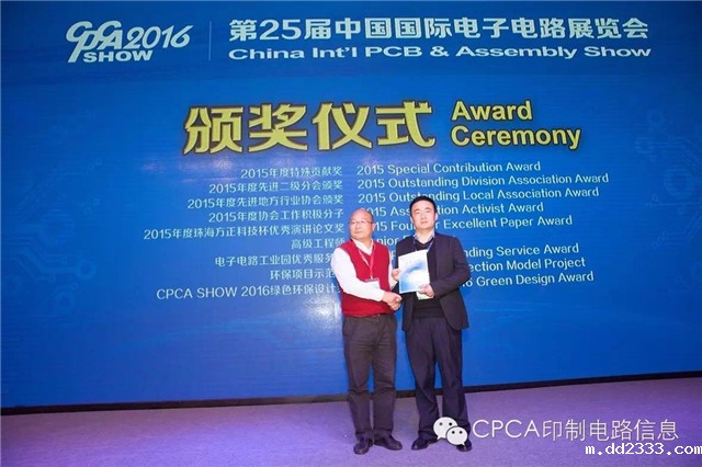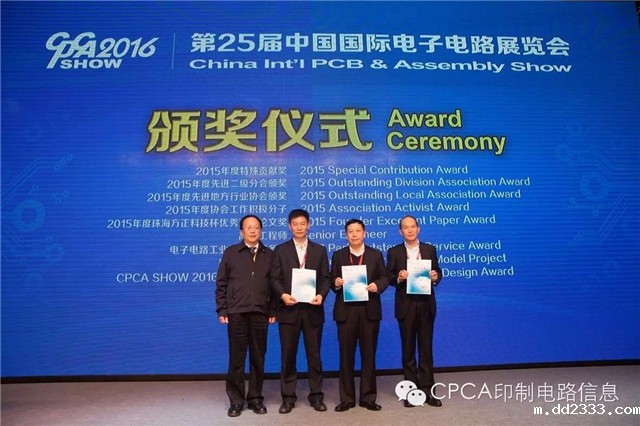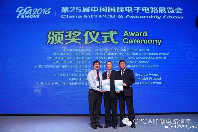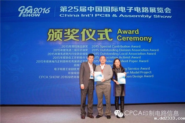 CPCA理事长由镭为2015年度特殊贡献奖获得者胜宏科技、方正科技、正业科技颁奖。