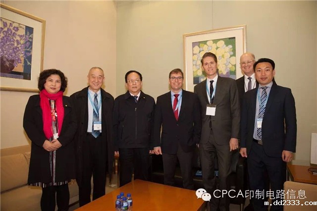 CPCA王龙基、张瑾与德国慕尼黑、美国半导体展负责人合影