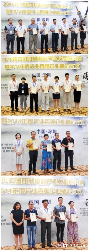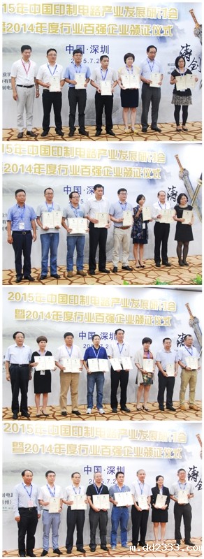 2015年中国印制电路产业发展研讨会暨2014年度行业百强企业颁证仪式在深圳隆重举行