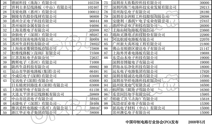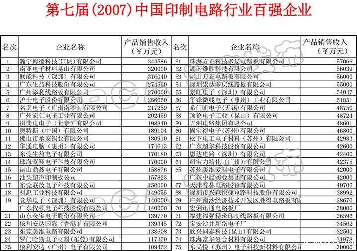 第七届(2007)中国印制电路行业百强企业