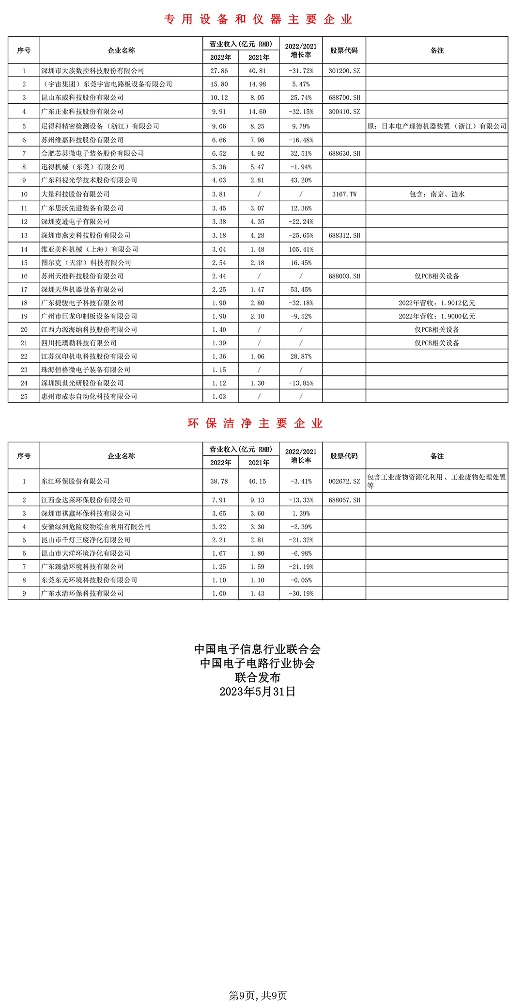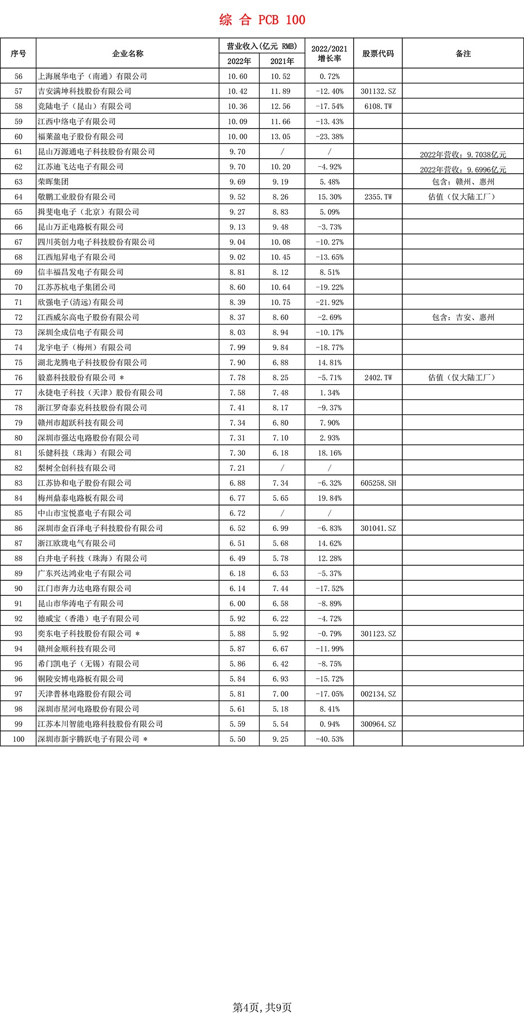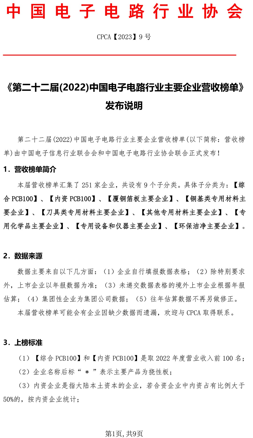 第二十二届(2022)中国电子电路行业主要企业营收榜单