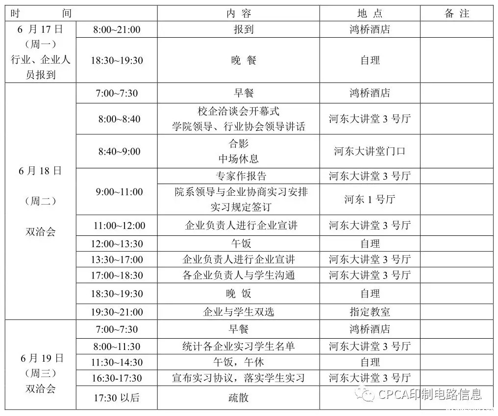 2019年校企合作洽谈会时间已定,详情请见下表。请有需求的企业将回执表于5月29日前回复至CPCA秘书处。