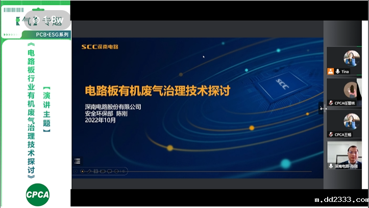 我国已经进入高质量发展时代,环境社会治理(ESG)实践是企业实现高质量可持续发展的重要路径。在“双碳”目标的引领下,绿色理念持续深入。面对高质量可持续发展的ESG趋势,CPCA从2022年10月开启PCB•ESG系列,将通过气、水、渣等细分专题,结合行业具体需求,邀请相关领域专家、产品及案例的优秀实践者,迎合趋势、结合实践,为PCB行业可持续发展提供有价值的参考。2022年10月19日下午,CPCA首先开启PCBESG系列——【气】专题,邀请深南电路股份有限公司环保经理陈刚作主题为“ 电路板有机废气治理技术探讨”的演讲。本次专题演讲以线上直…