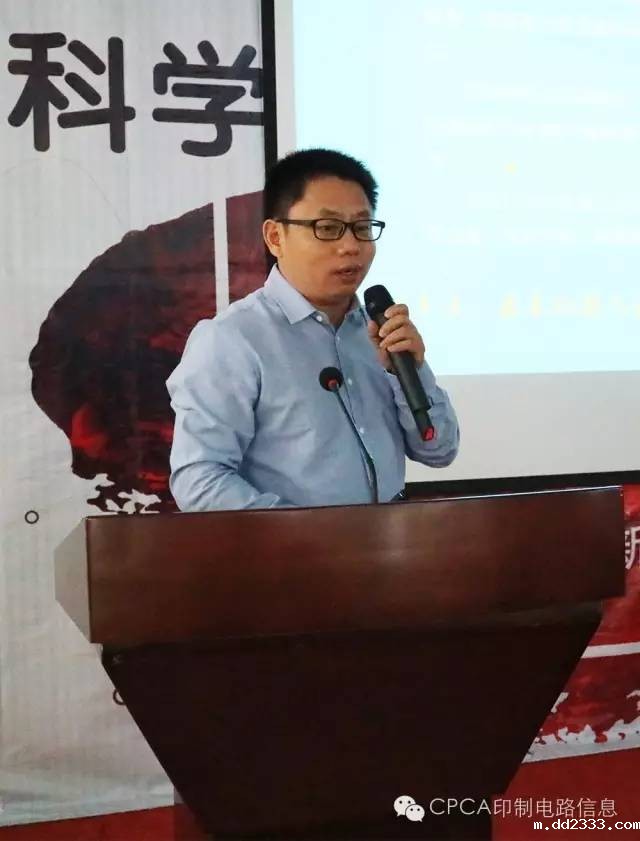 他做了《智能制造与PCB行业发展》报告,介绍了如何面对智能制造的七大技术趋势(TSV技术、化合物半导体、导电涂层材料、AI技术、HDI技术、埋嵌技术),分析了PCB行业存在的问题,智能制造PCB制造全流程分解以及智能制造企业转型再造问题。相信大家一定受益匪浅。