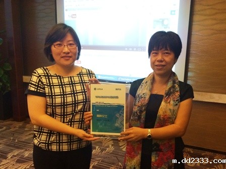 图为HKPCA袁嫦娥向香港生产力促进局周晔女士颁感谢状